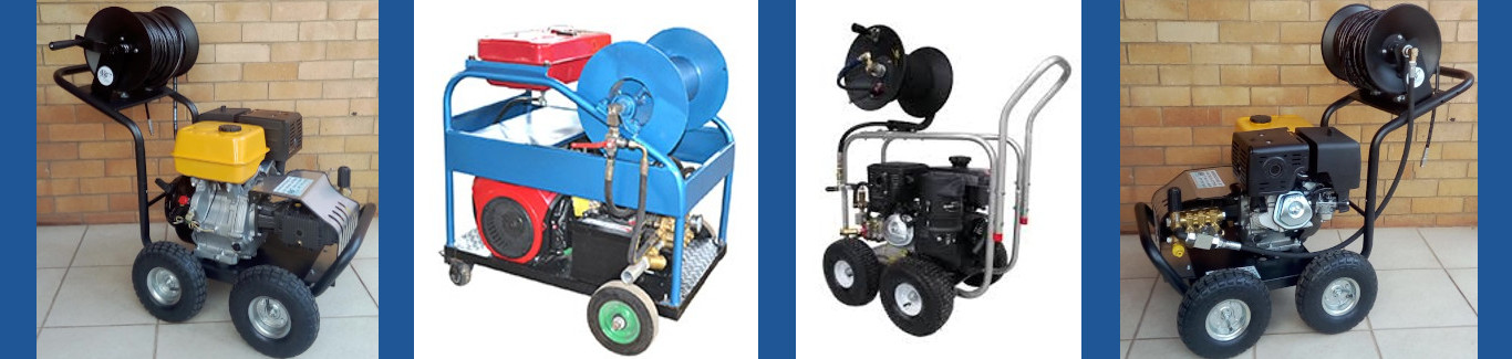 AAA Water Jet Drain & Sewer Cleaning Machine Manufacturers build any size High Pressure Water Jet Sewer & Drain Cleaning Machines. I can also build Units on Trailers with Water Tanks. Machines available in Petrol, Diesel & Electric Units. Any Length of pipe you require. Up to 500Bar Pressure, 120Lp/m Flow rate & 100m of Hose for drain cleaning.