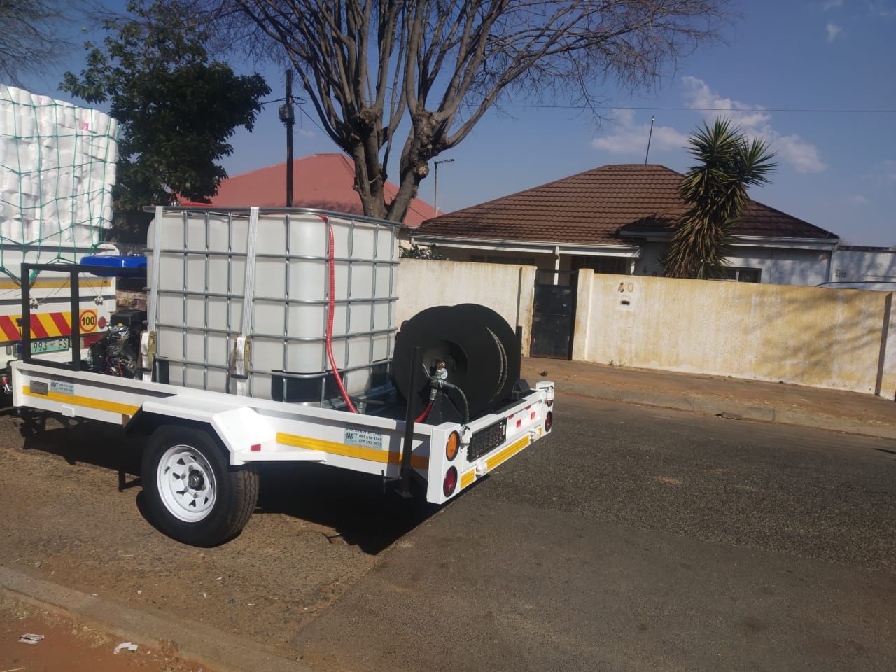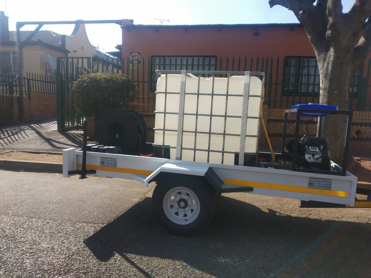 Trailer Units MegaKRV200/45 Trailer Unit - 200Bar-45L/min Petrol Engine Drain & Sewer Jetter/Cleaner with 80m Manual Hose & Reel + 1x (4hole) Standard Nozzle on a 750kg Trailer with 500Ltr Water Tank & Reg. Papers (Cleans 50mm to 250mm Drains) – R97 900.00 excl. VAT
